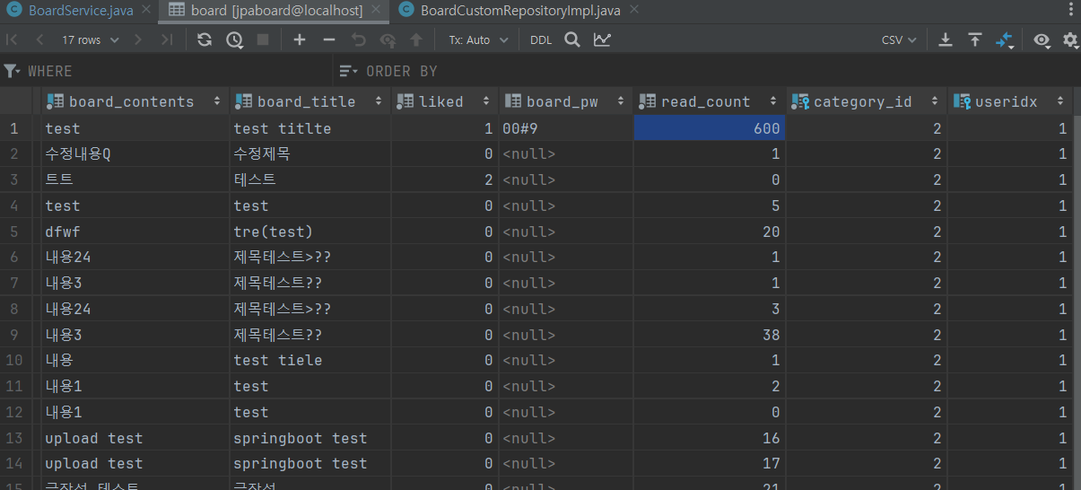 우선은 비관적락을 적용하기 위해서 게시글 조회수 증가와 게시글 조회에 있는 서비스코드 와 리포지터리 코드를 수정을 해야 한다.