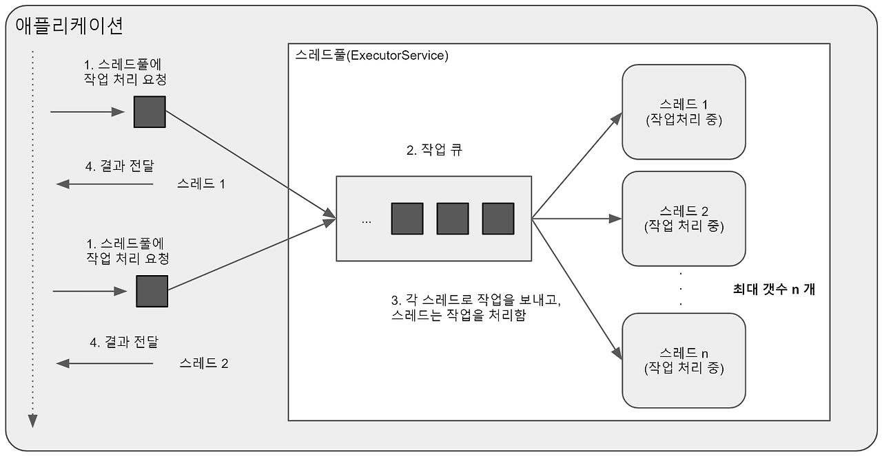 1. 어플리케이션에서 스레드풀의 작업요청을 합니다.
