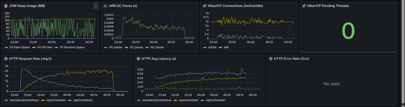 - HTTP Error Rate(5xx): 없음 → 에러율 0%.