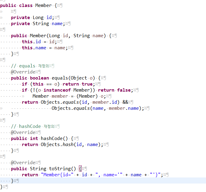 따라서 우리가 직접 만든 엔티티도 “논리적으로 같음”을 정의하고 싶다면 equals()를 반드시 오버라이딩해야 합니다.