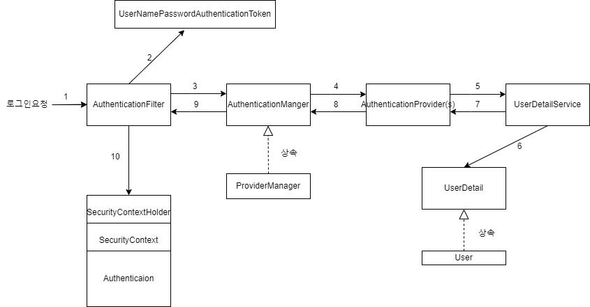 SpringSecurity의 인증절차는 다음과 같습니다.