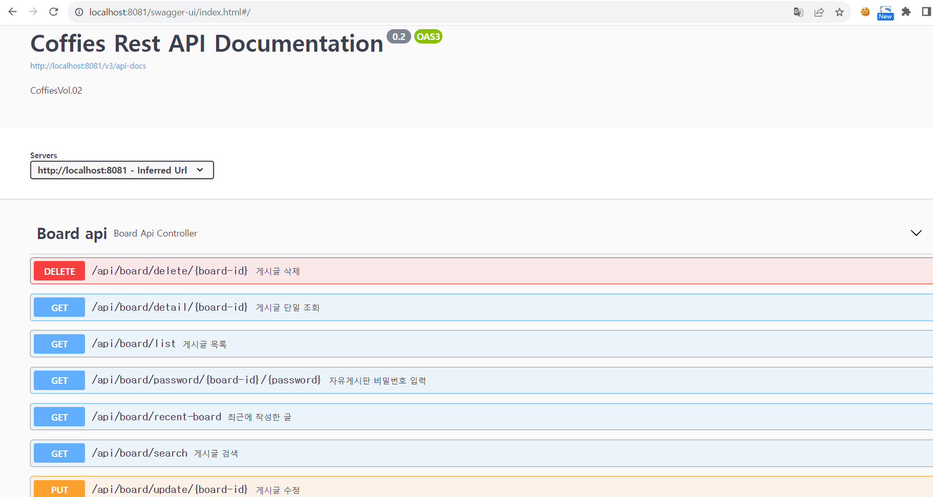 .title("Coffies Rest API Documentation")//swagger ui 에 나오는 제목