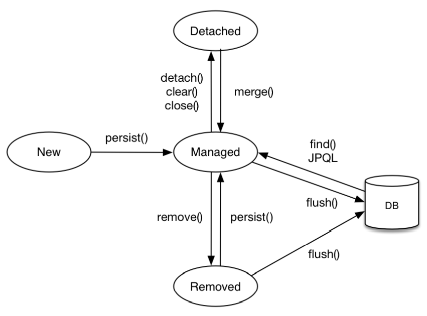 - 영속 (managed) : 영속성 컨텍스트에 관리되는 상태
