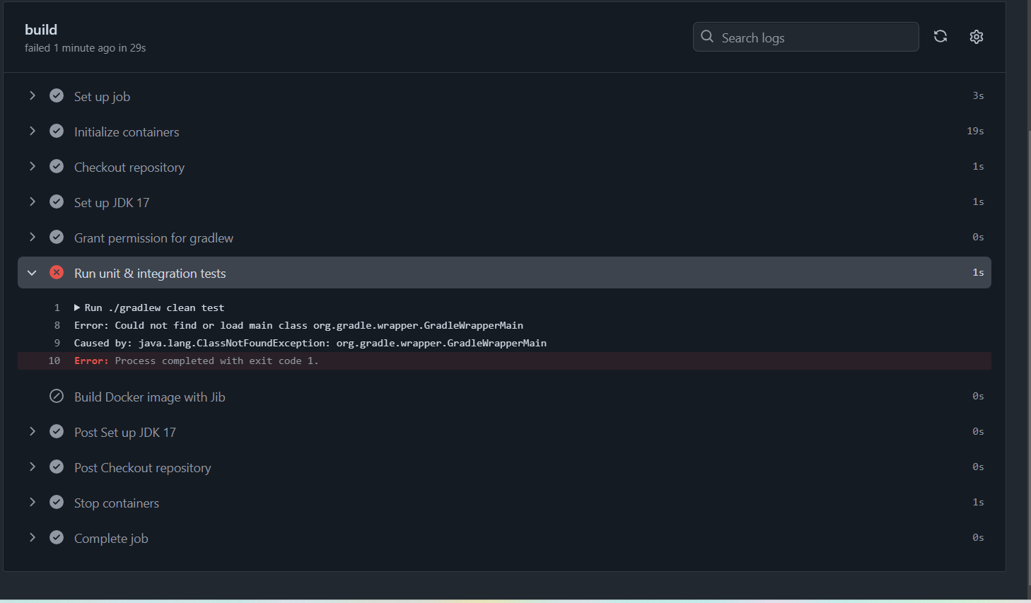 main브랜치에 푸쉬를 했고 CI가 작동이 되었는데 아래와 같은 화면이 나왔습니다.
