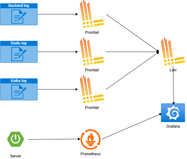 - Spring Boot, Redis, Kafka 로그를 각각 Promtail이 수집