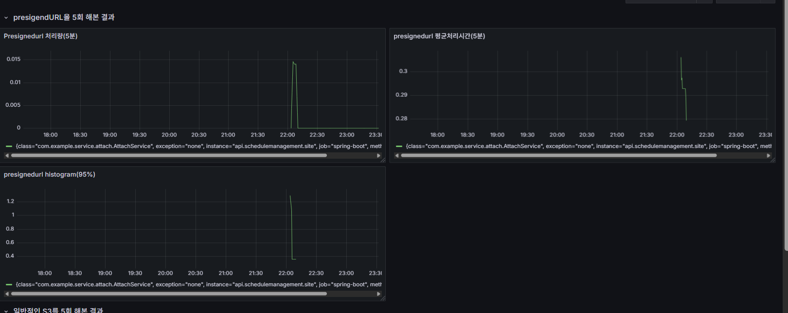 - PresignedUrl을 적용시와 기존의 S3의 기능으로 했을 경우의 성능을 측정하기.