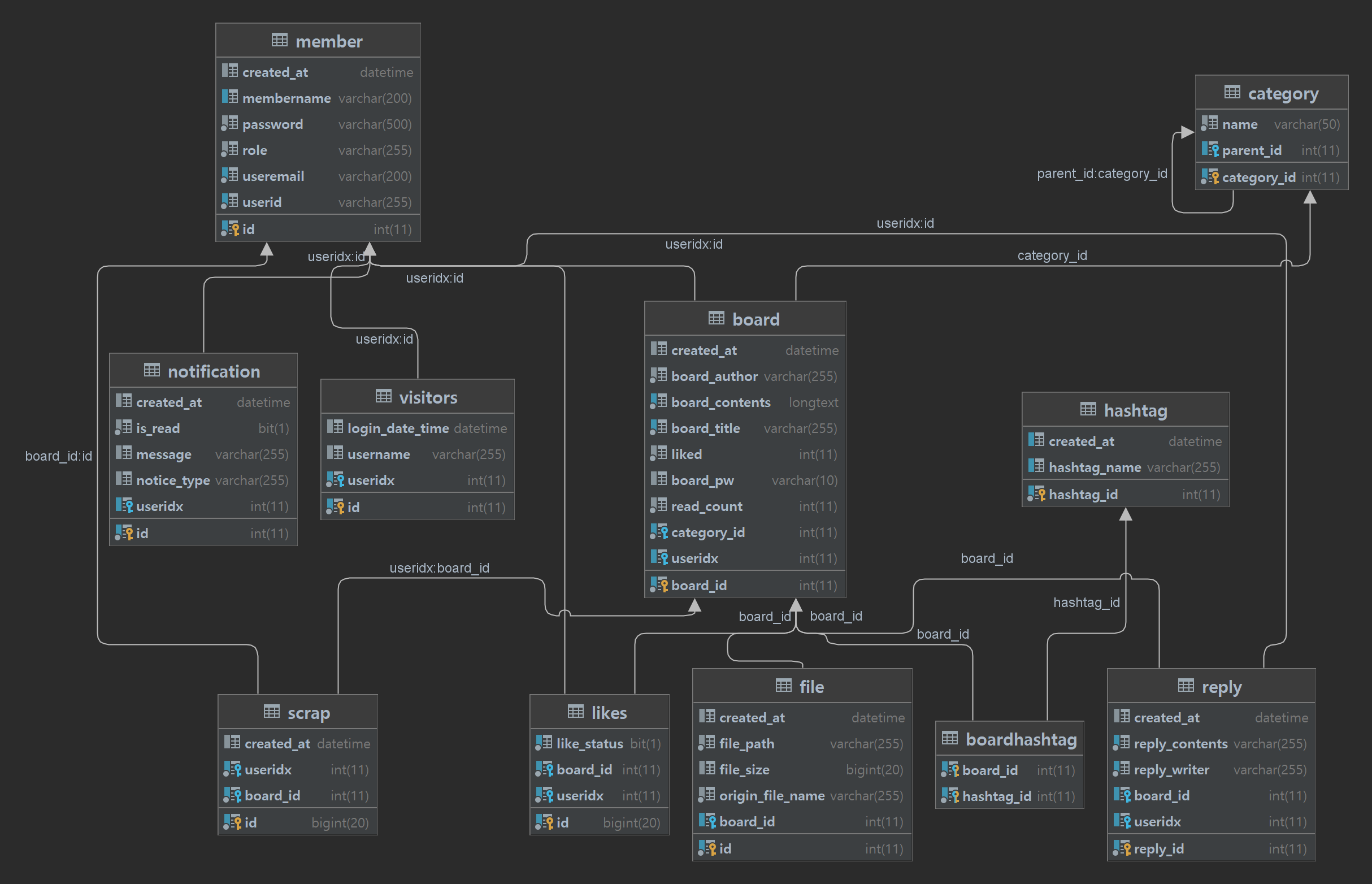 - 게시판 - crud 기능, 페이징,검색, 조회수,파일 업로드/다운로드,게시글 좋아요, 해시태그, 실시간 알림